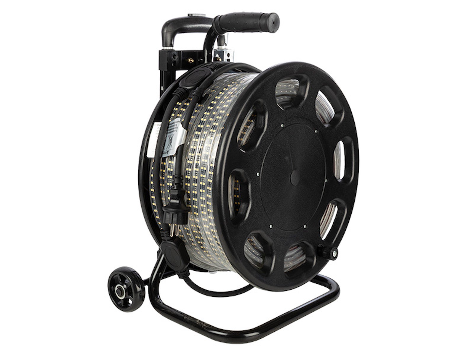 Takket være IP65-beskyttelsen kan det også bruges udenfor, f.eks. til at oplyse terrasser, gårde, marker, hegn eller husets ydervægge. Det kører på almindelig 230V strøm og har 180 LED’er pr. meter. Når lyset er slukket, falder den mørke farve diskret ind i omgivelserne.