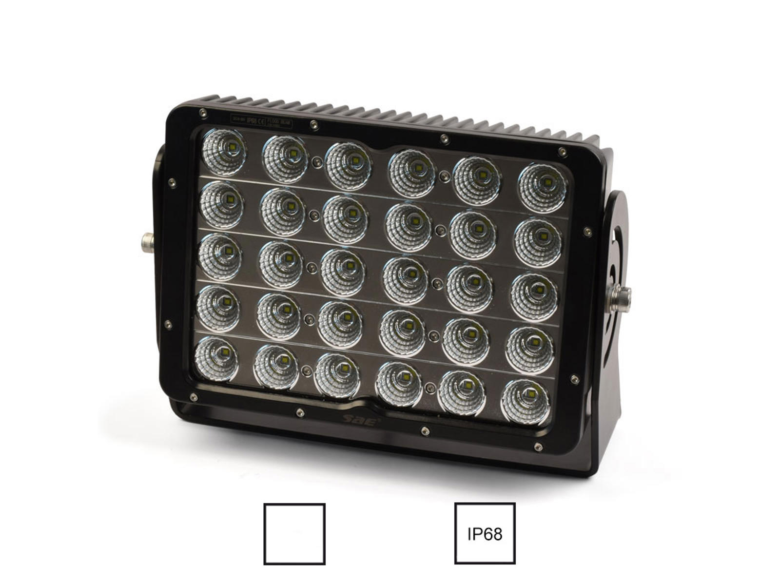 Stor arbejdslampe med 30 styk 5 watt LED. Optagen effekt 120 watt Arbejdslampen giver et godt lys, hvor lyskeglen er en kombination af spot og spredt lys. LED lyskilderne et justeret til bedst muligt lys i forhold til effekten for bedste holdbarhed. Dette ses på den optagne effekt. Tilsluttes 10-30 volt DC