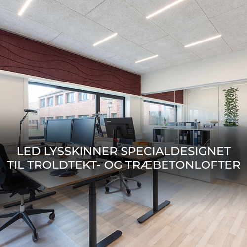 Oplev konceptet med specialdesignede LED lysskinner til Troldtekt- og træbetonlofter.