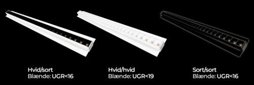 Sortimentet omfatter også en ny UGR-version med lav blænde, der sikrer et behageligt og kontrolleret lys i professionelle miljøer.