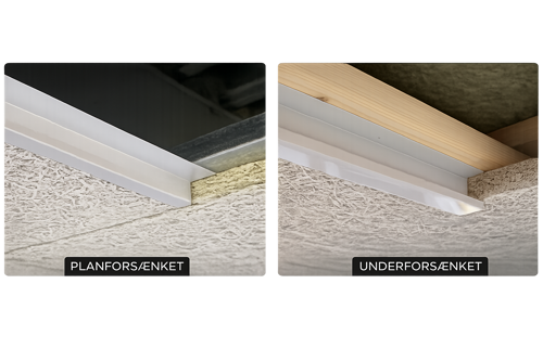Denne version monteres således, at lysskinnen er lige under loftpladen, men stadig er helt op mod loftet uden synligt mellemrum.