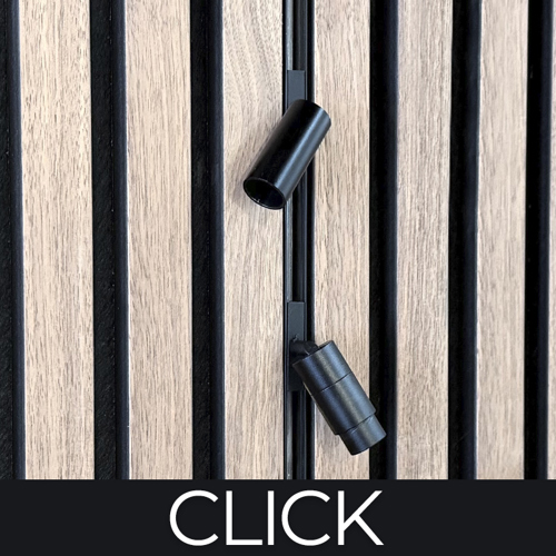 Ved denne løsning købes skinnen i den ønskede længde og dertil vælges mellem et udvalg af forskellige lamper og belysningsdele, der nemt klikkes ind i strømskinnen.