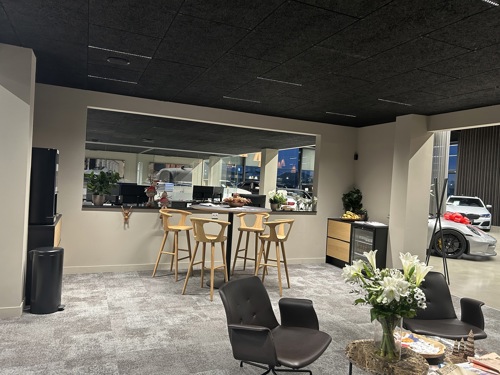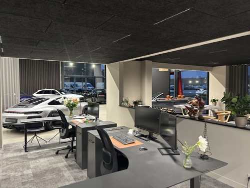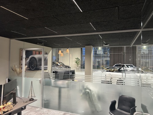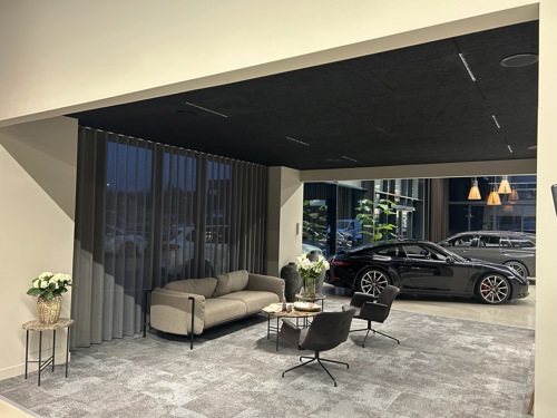 Når man træder ind ad døren hos Agilease, oplever man et moderne bilhus, hvor belysningen spiller en stor rolle i helhedsoplevelsen.