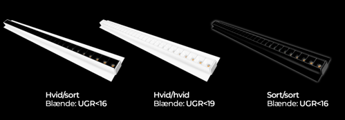 De nye LED lysskinner, som er tilgængelige i tre farvekombinationer, er designet med en specialudviklet reflektor, der sikrer et behageligt og blændfrit lys.
