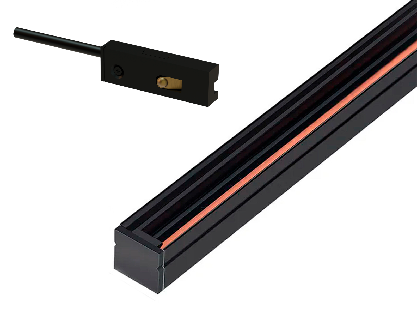 CLICK LED alu-strømskinne. sort. 600x11x12 mm. inkl. strømadapter med DC han-stik. 2m ledning. cover og endestykke