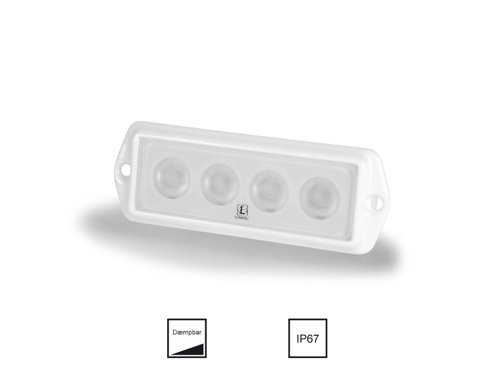 LED-dækslys til montering plant med to rustfri stålskruer. Godt arbejdslys selvom den ikke fylder ret meget. Lyseffekten svarer til 55 watt halogenlys, men forbruger ca. 80 % mindre strøm.