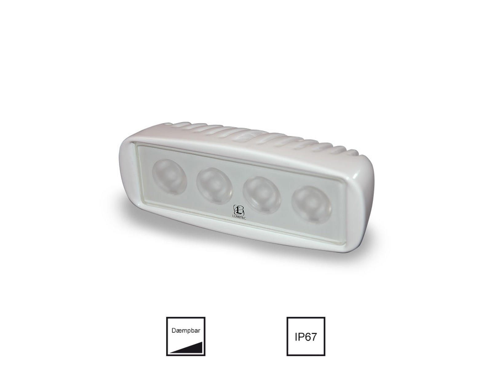 LED-dækslys der ikke fylder ikke ret meget, men giver et godt arbejdslys. Lyseffekten svarer til 55 watt halogenlys, men forbruger ca. 80 % mindre strøm.