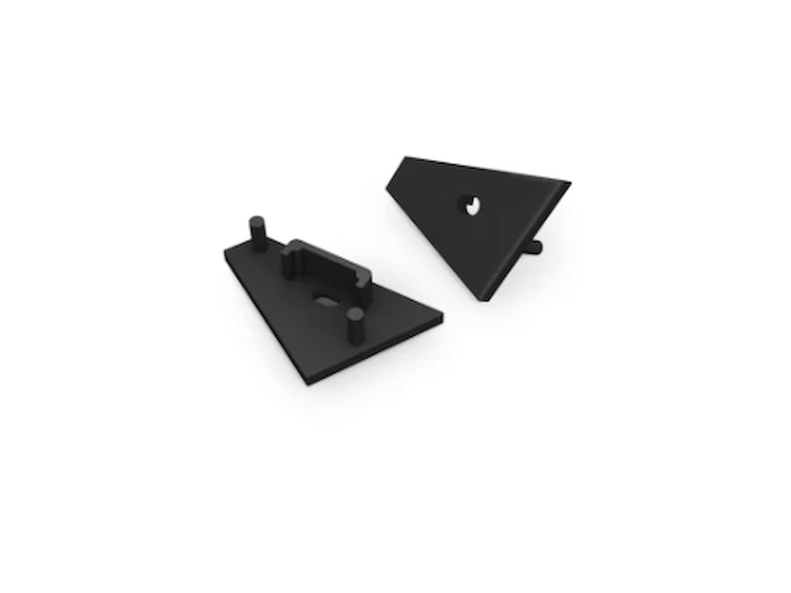 Sort Endestykke-sæt (2 stk.) m/ledningshul for alu-vinkelskinne. 20x16 mm.