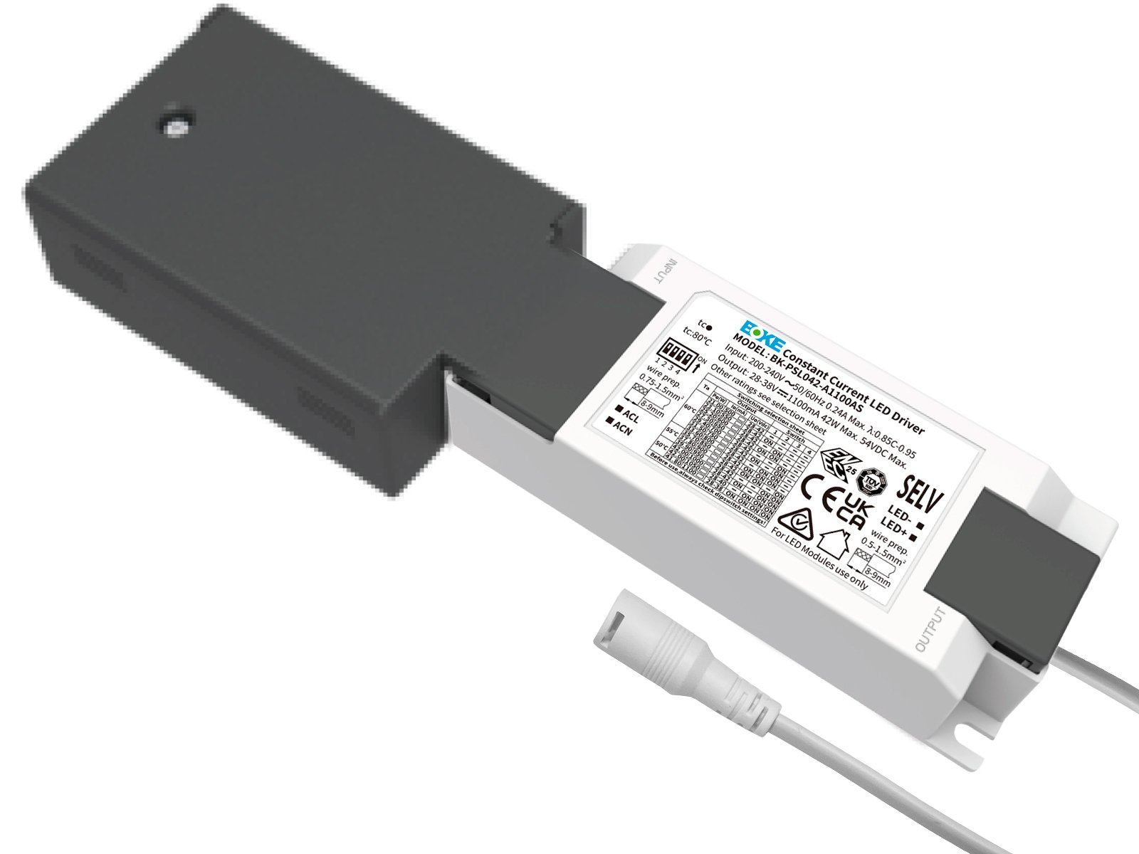 BOKE driver ON/OFF 230V AC/28-42V DC. 500-1100 mA (dip) max 42W