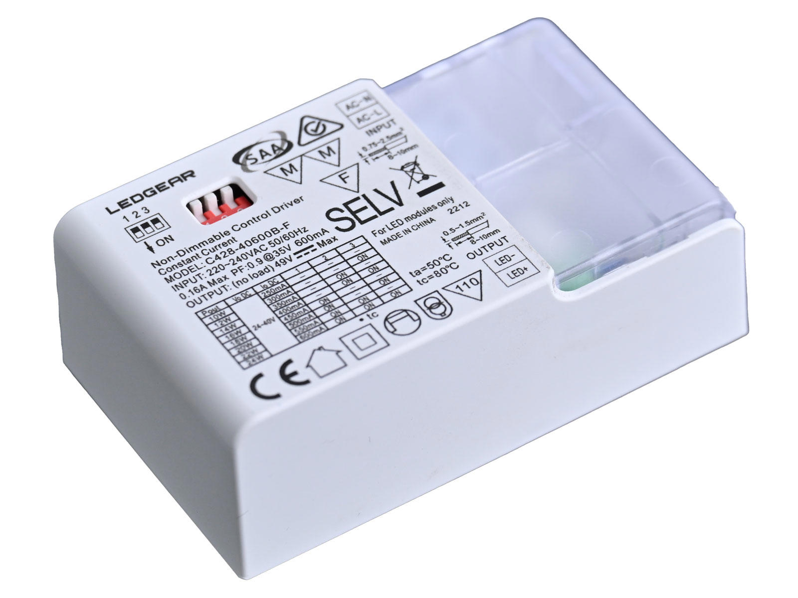 | Strøm (I): | 250-600mA |