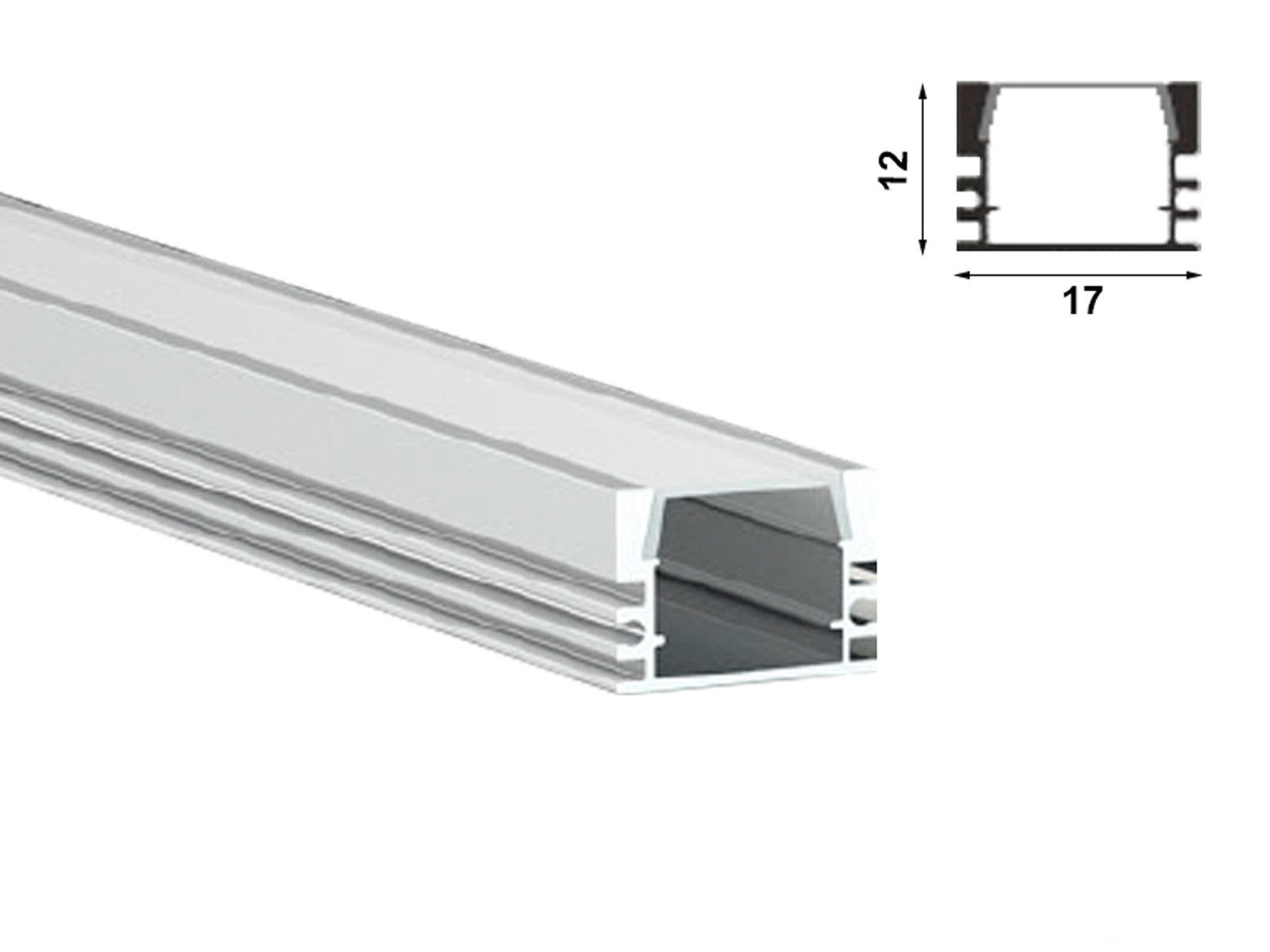 Alu-skinne for LED strip 17x12mm. SORT. 190 cm. inkl. mørkt cover og sorte endestykker.