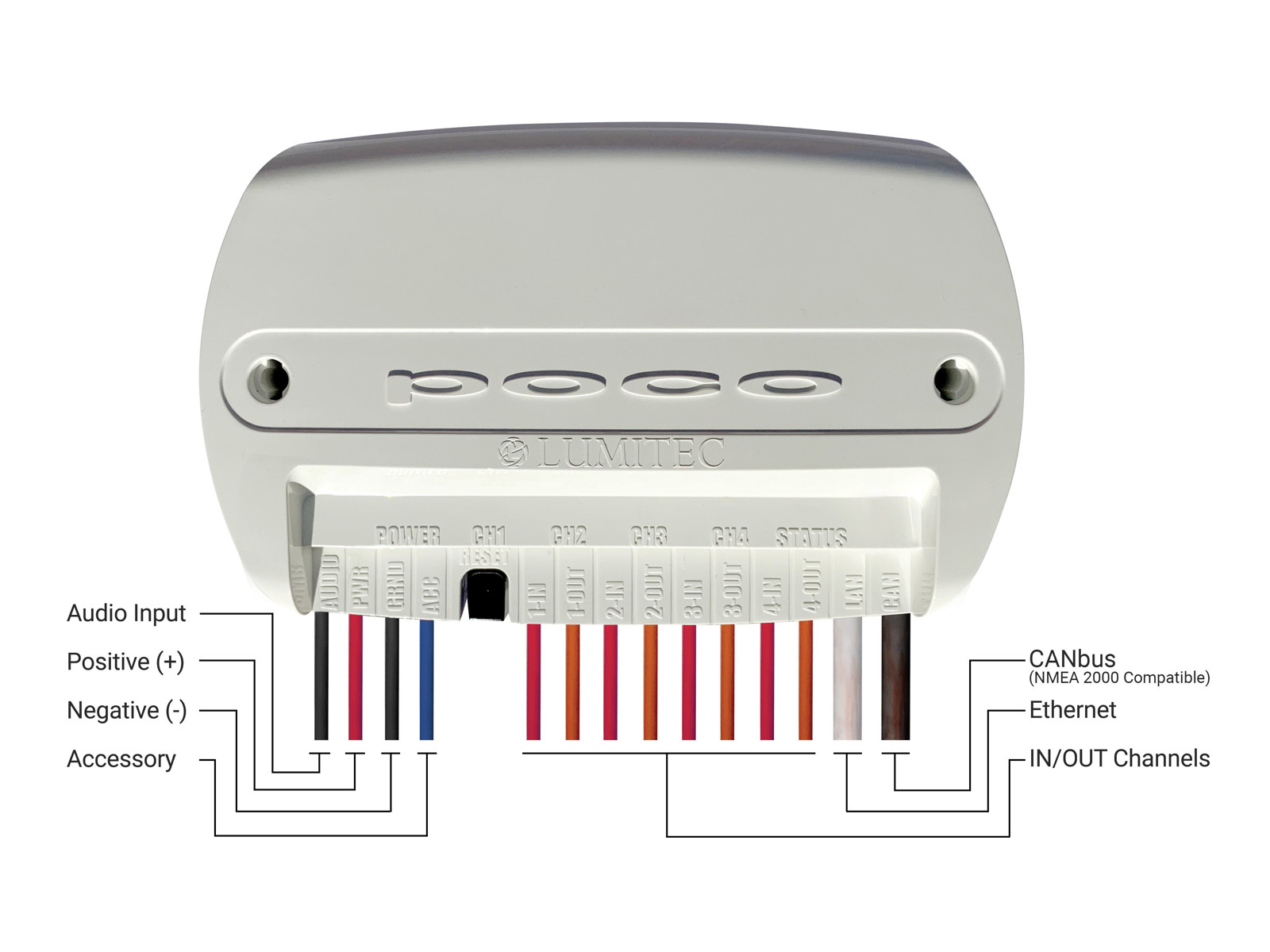 Tag styringen med lyset som aldrig før – Poco 4 giver dig en komplet digital belysningsløsning med intelligent lydstyring, NMEA 2000-kompatibilitet og CANbus-integration. Alt samlet i én kompakt enhed, der er nem at installere og klar til at opgradere din båd eller køretøj med næste generations belysningsteknologi.